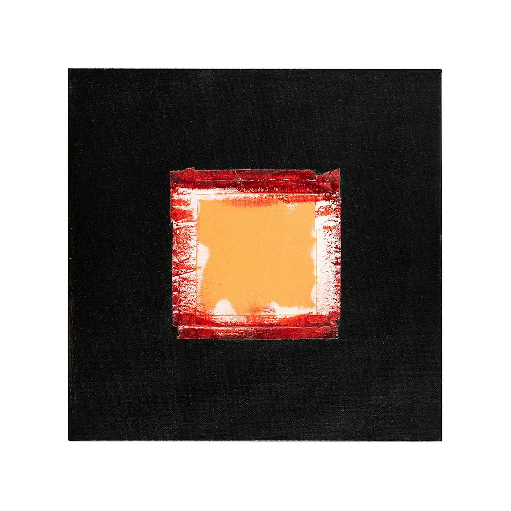 Contrastes audacieux et tensions visuelles, la géométrie devient le théâtre d'une bataille silencieuse entre l'ombre et la lumière, l'ordre et l'anarchie. Le contrôle cède la place au hasard, générant un dialogue entre la rigidité géométrique et le chaos possible. Un carré clignote dans l'obscurité, symbolisant la vitalité contre l'obscurité. Le « barbouillage » des couleurs introduit un élément de temporalité, comme si l'œuvre capturait un instant de transformation : l'orange cherchant à s'étendre ou, au contraire, à être contenu par le noir.